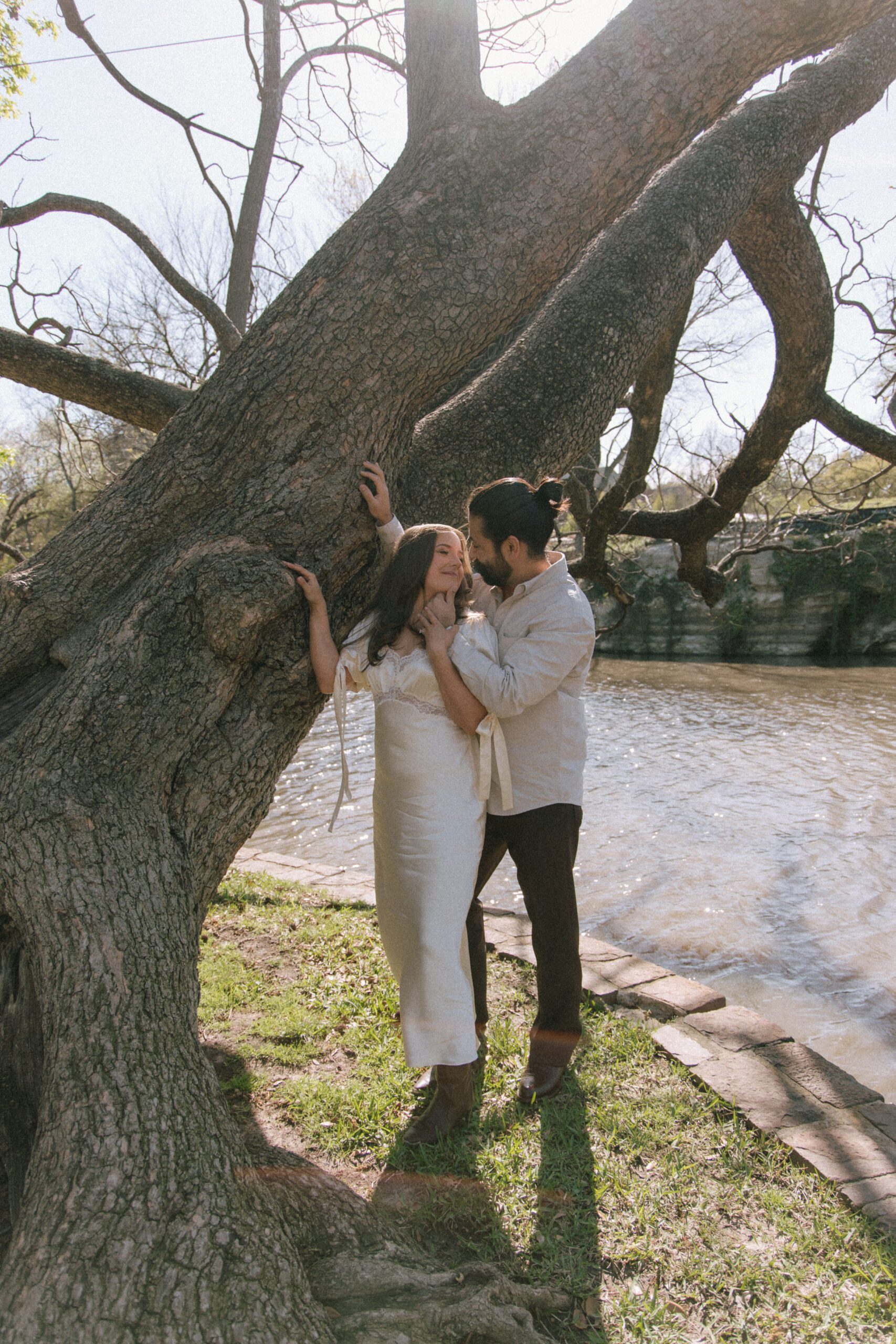 Dallas garden engagement photos captured in a romantic park setting with a timeless, documentary approach. This session had lush greenery & candid moments.